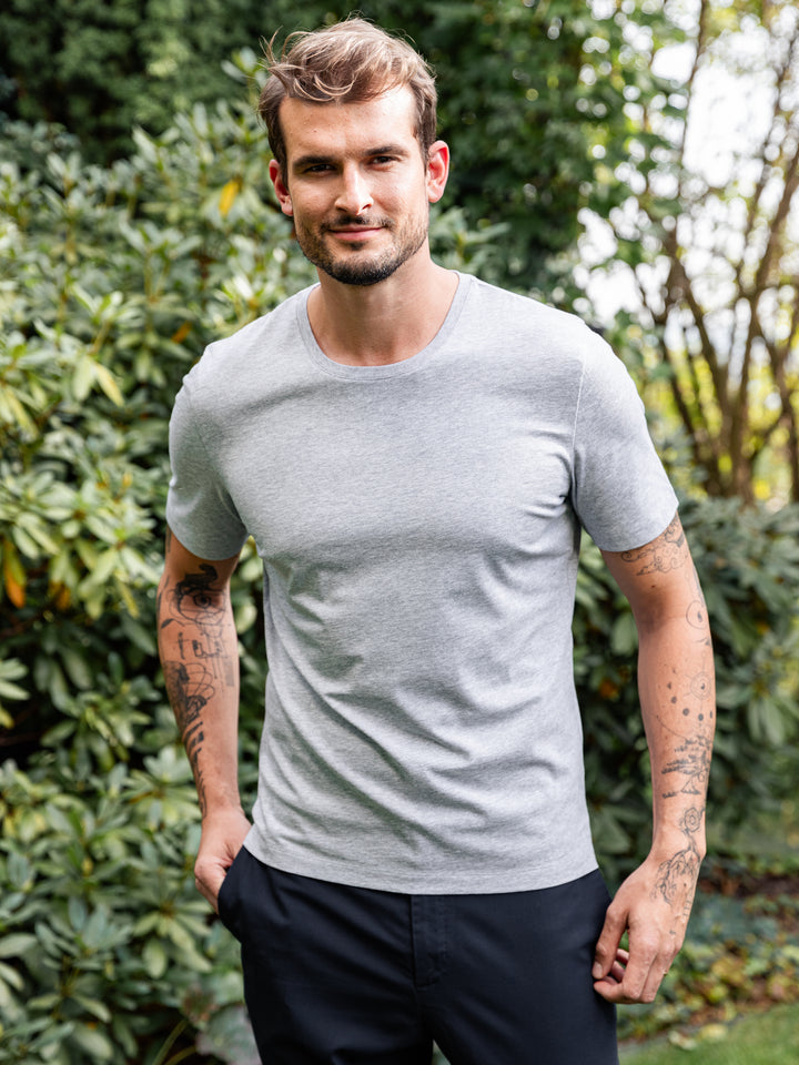 100% organická bavlna vyrobená v Rakousku z nejlepších přízí na trhu. Elegantní střih se hodí jak na cvičení, tak pod sako. Tričko je předeprané, po vyprání se tedy nesrazí.